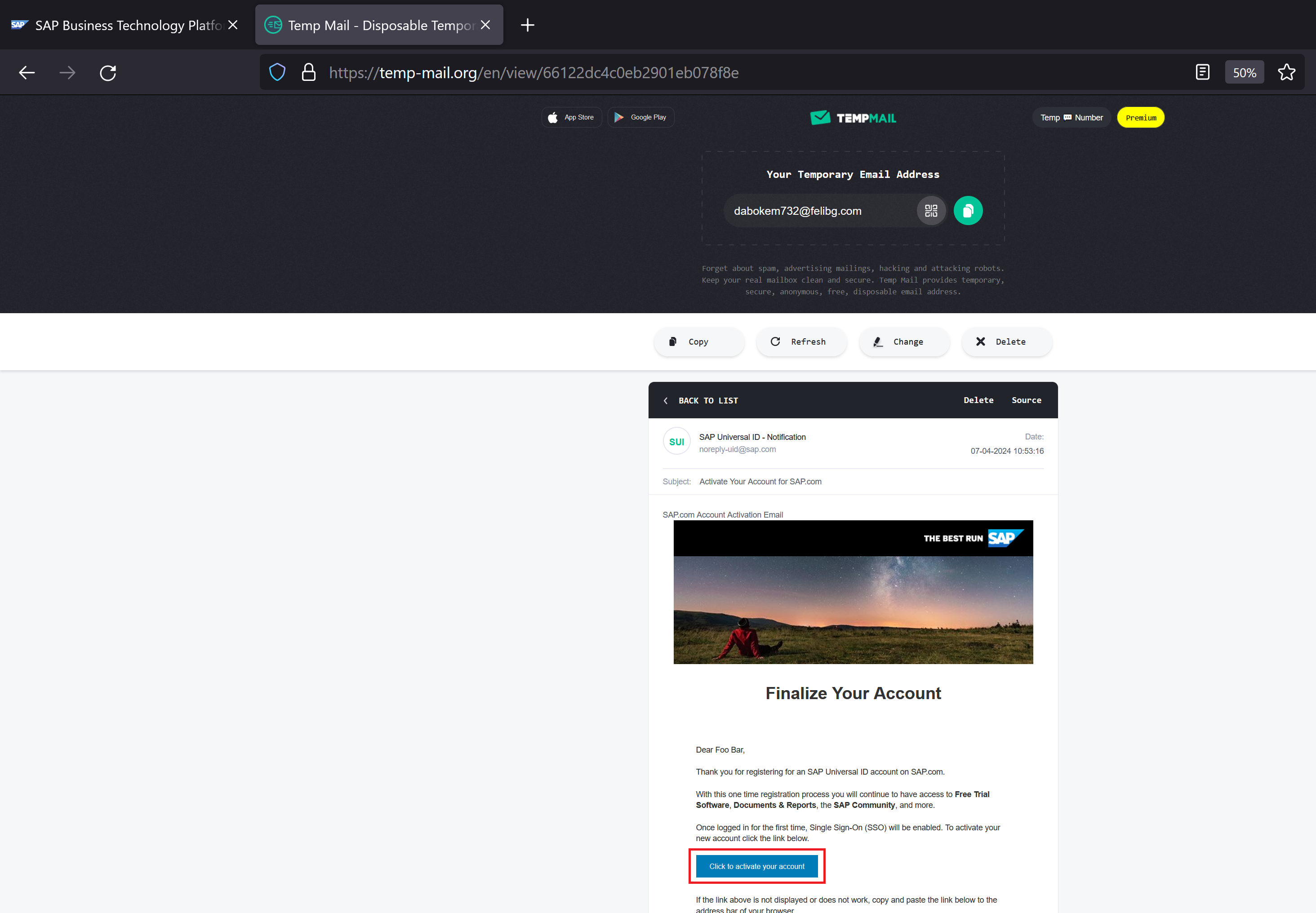 | 不要关闭上面的窗口,否则会生成新的 email id。 |